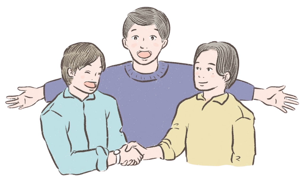 協力・自分らしく・満足している様子を表しています。